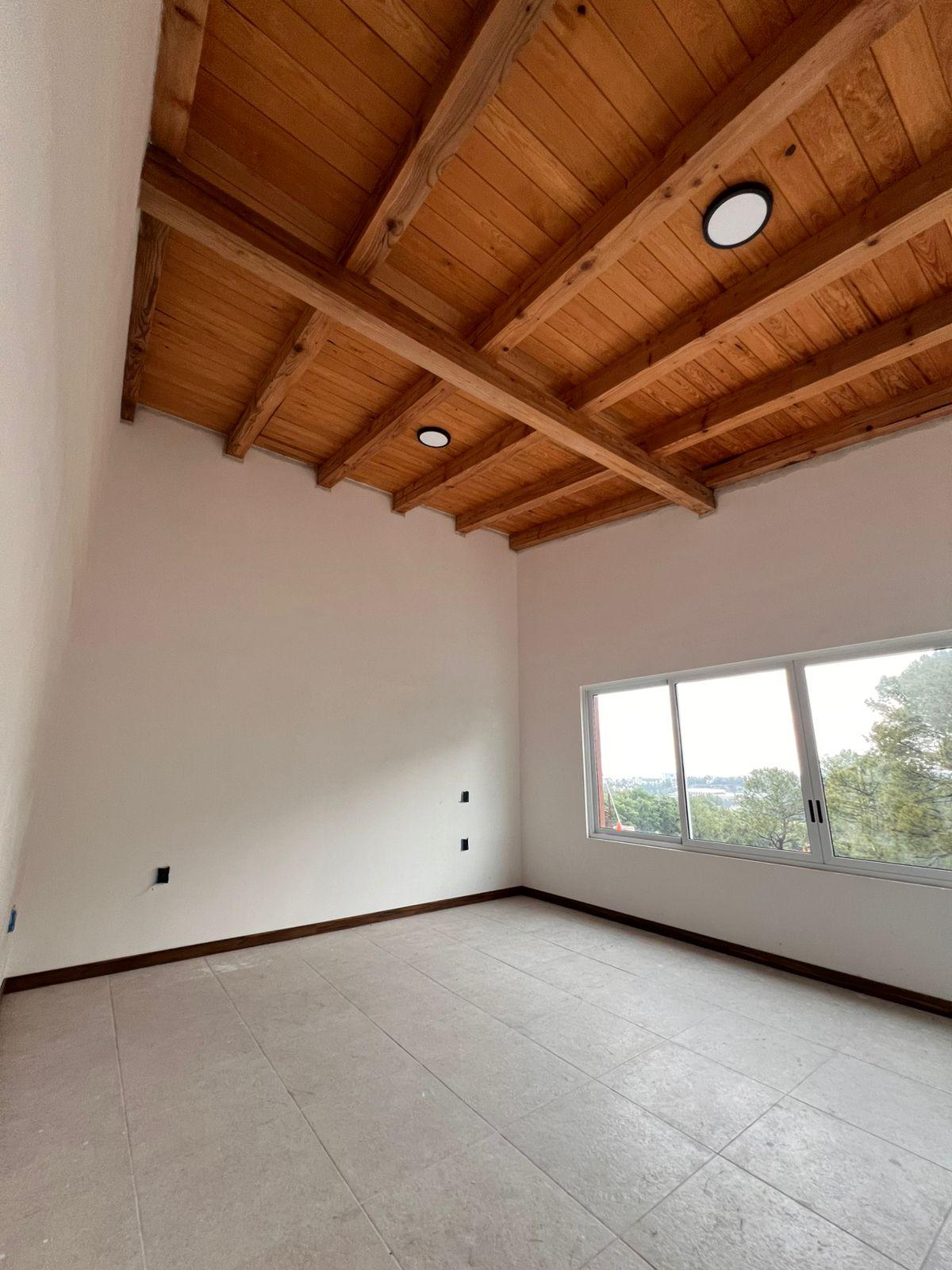 - Recámara principal con vestidor, baño completo y techos de madera de 3.20 m de altura