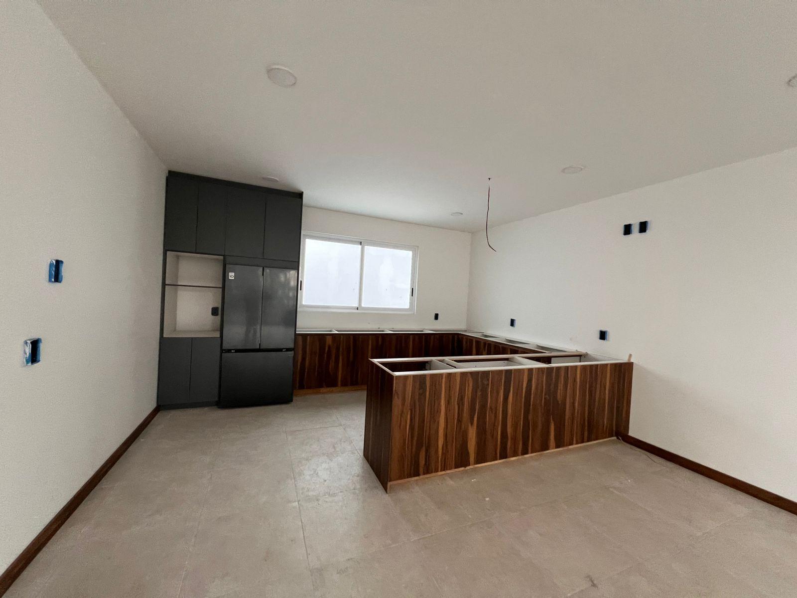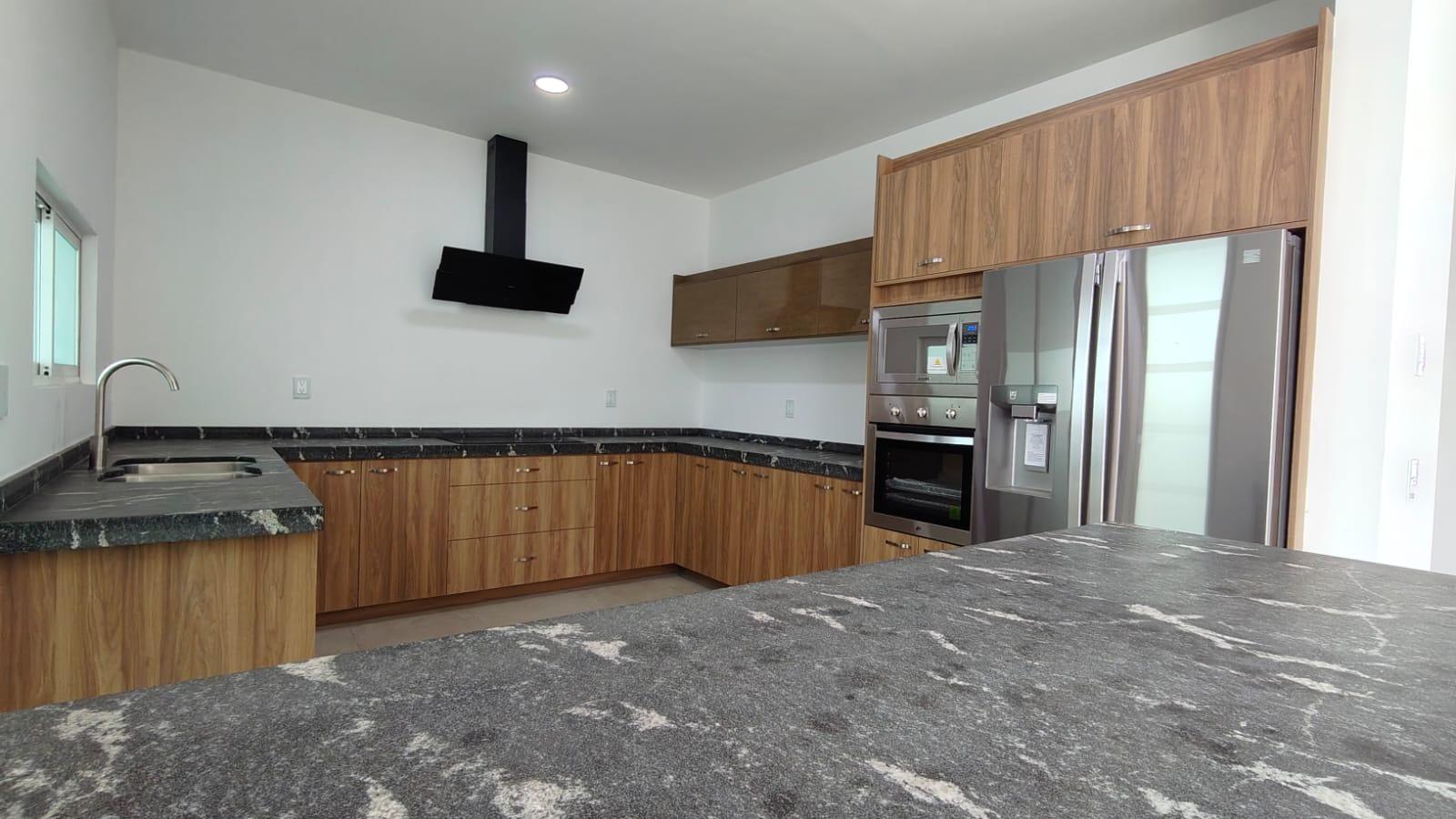 - Isla, refrigerador, horno y microondas