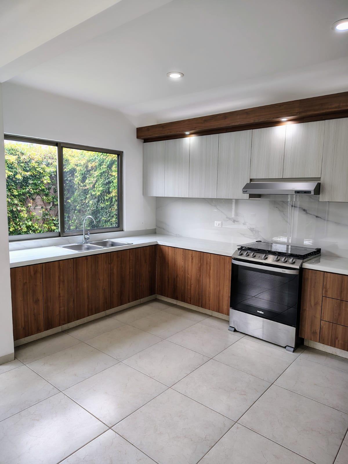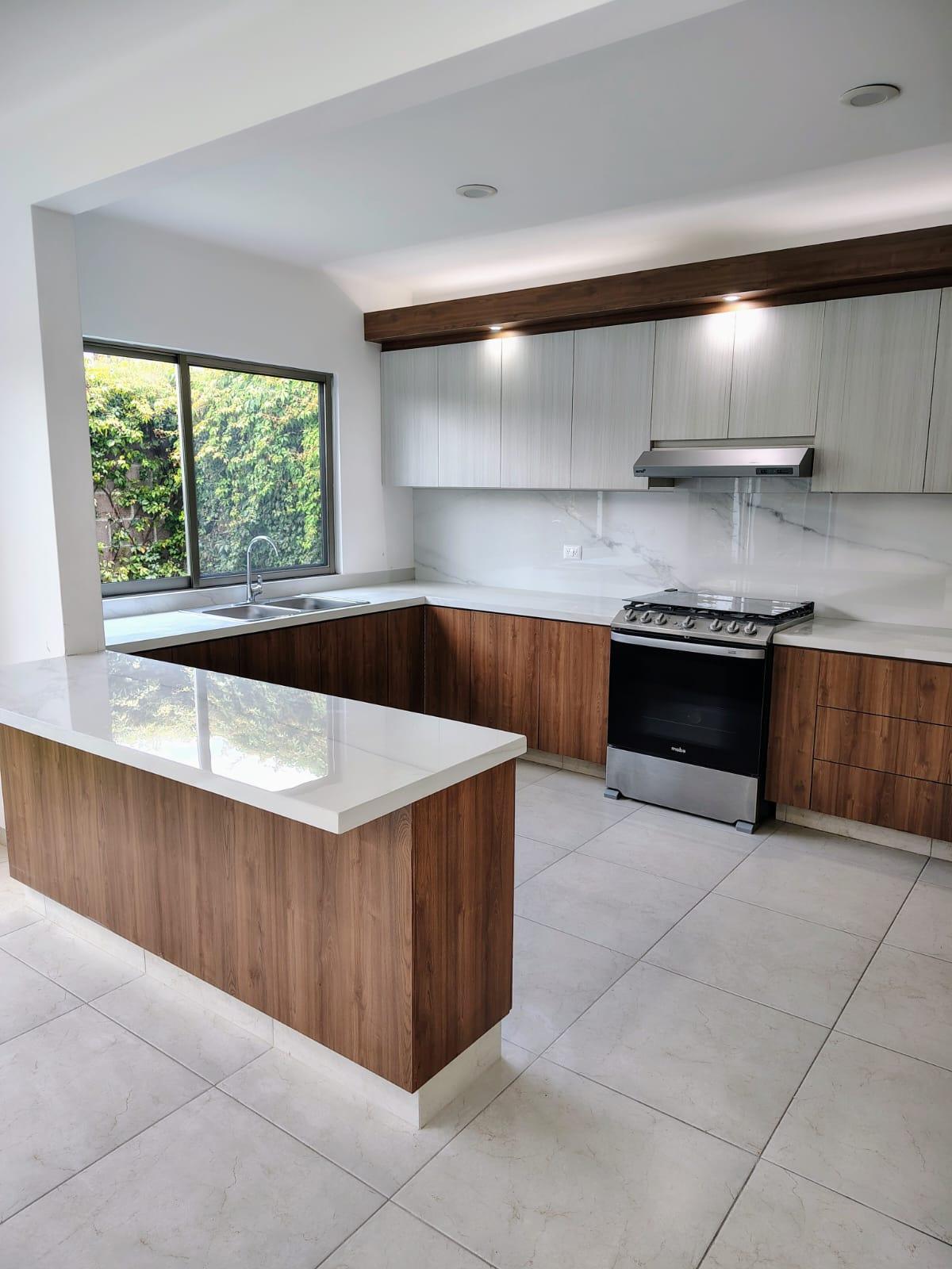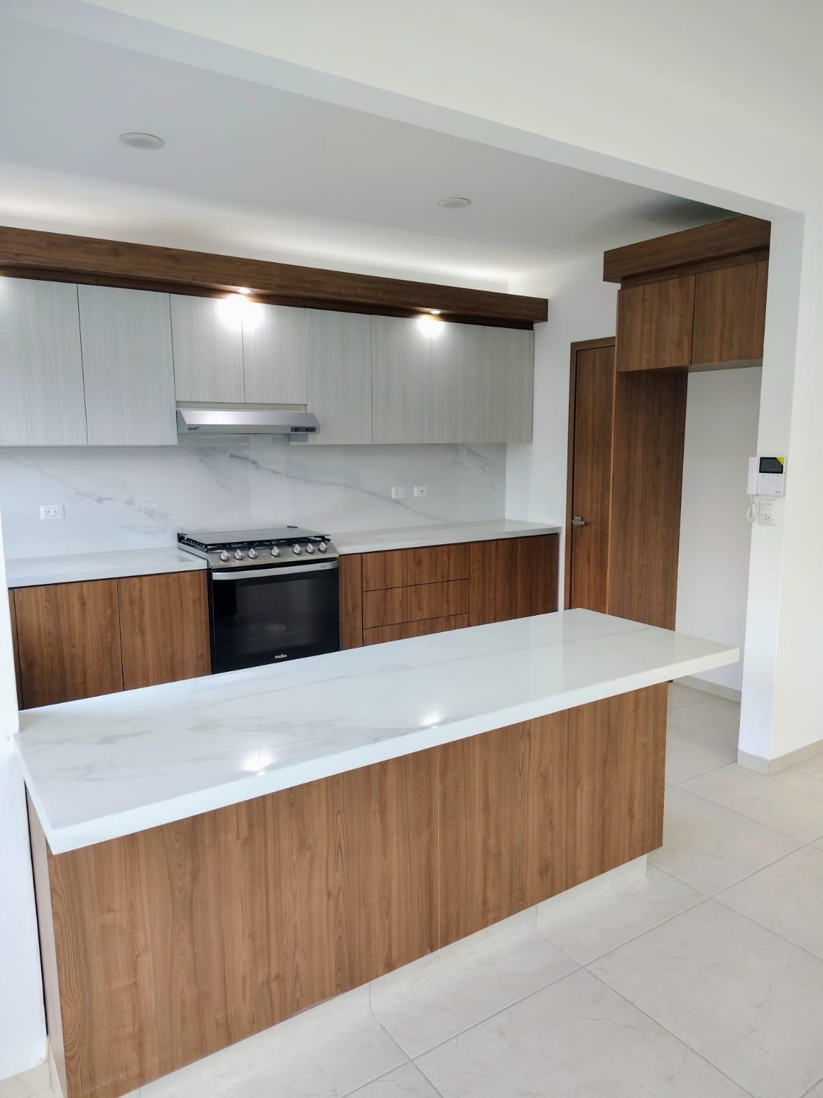 - Cocina integral con cubierta de porcelanato